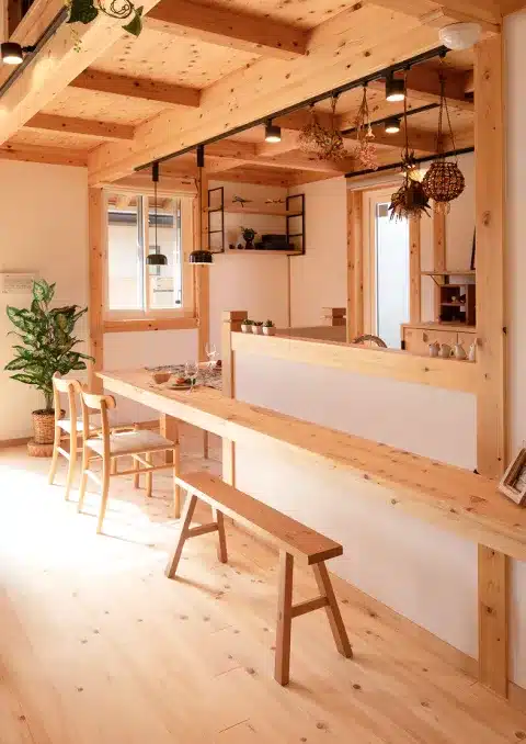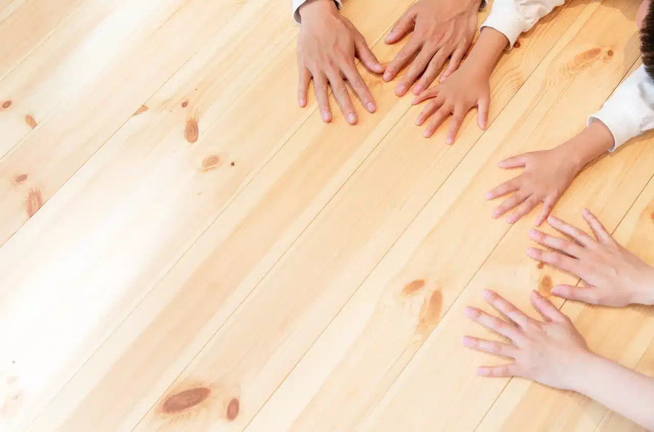 石油系塗料ではなく、植物からつくられた自然塗料を使用。体にやさしく安全で、木の呼吸を妨ぎません。自然素材の持つ調湿性能を活かしながら、木の美しい表情を長く保ちます。