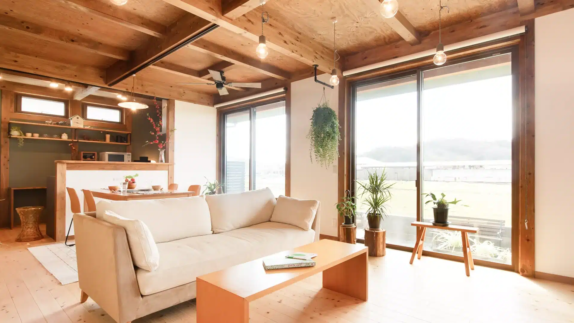 当店のモデルハウスでは、自然素材をふんだんに使用した住まいをご覧いただけます。木のぬくもりと柔らかな光が調和した空間は、日常の疲れを癒す心地よい暮らしを実現。広々とした間取りと大きな窓が解放感を演出し、四季を感じられる暮らしをお届けします。この機会に、温もりが溢れる住まいで新しい生活スタイルを体感してみませんか。