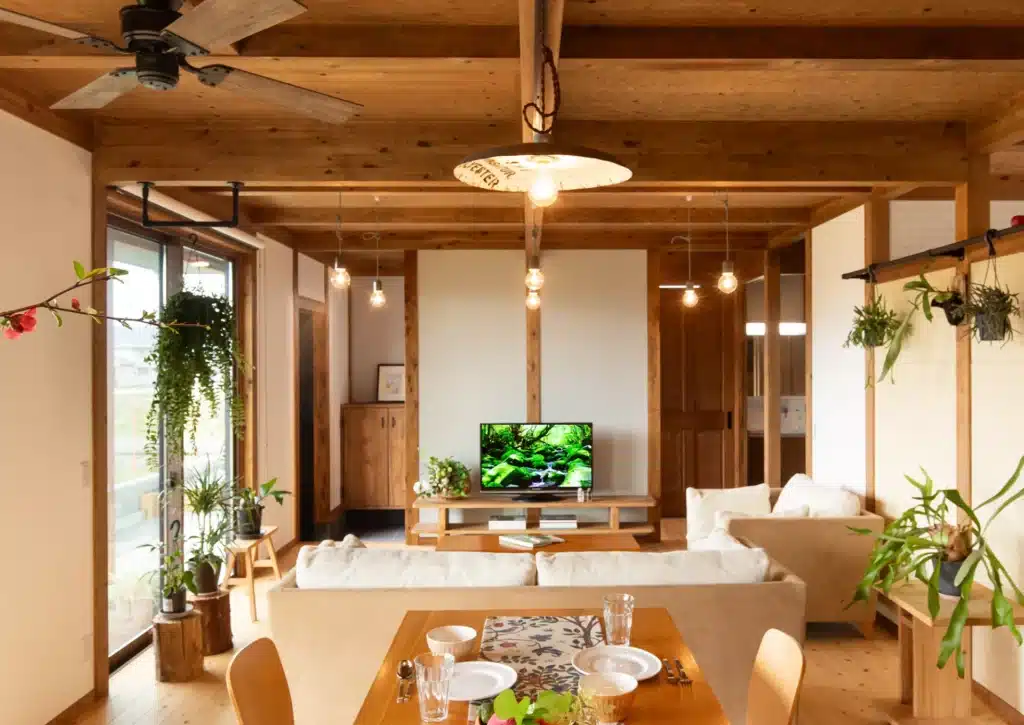 柱や梁を室内に現す伝統工法。構造が見えることで安心感があり、調湿効果にも優れ、強さと美しさを両立した住まいが実現します。