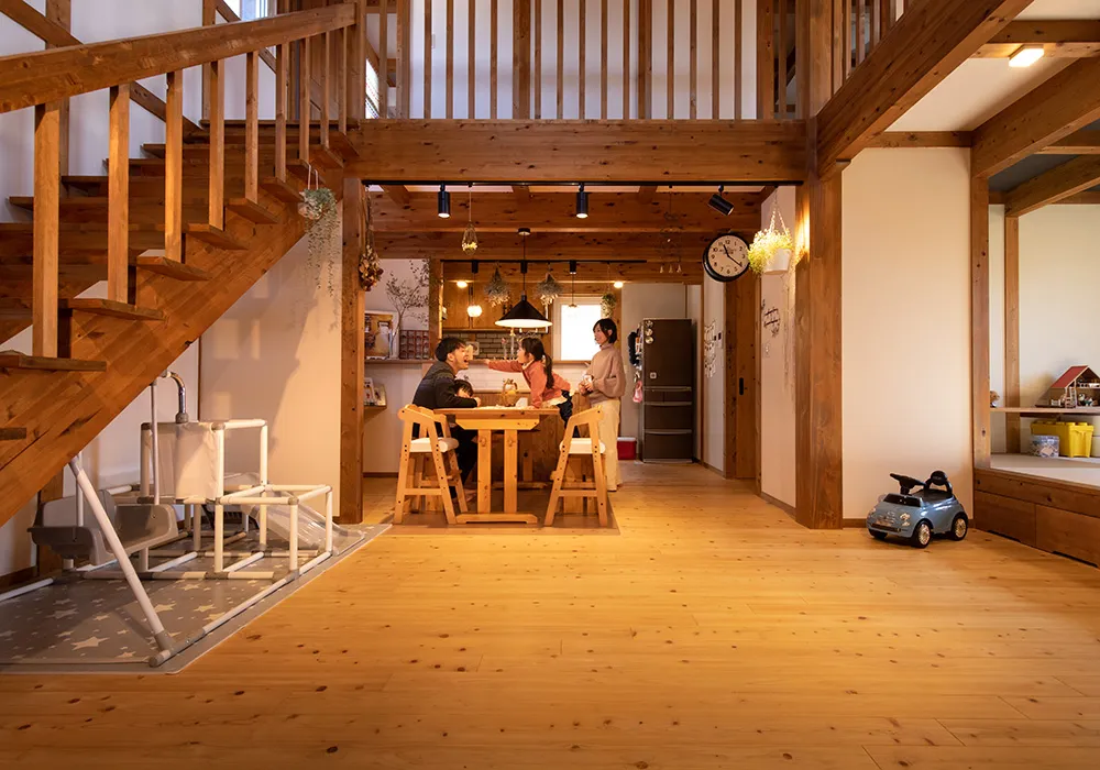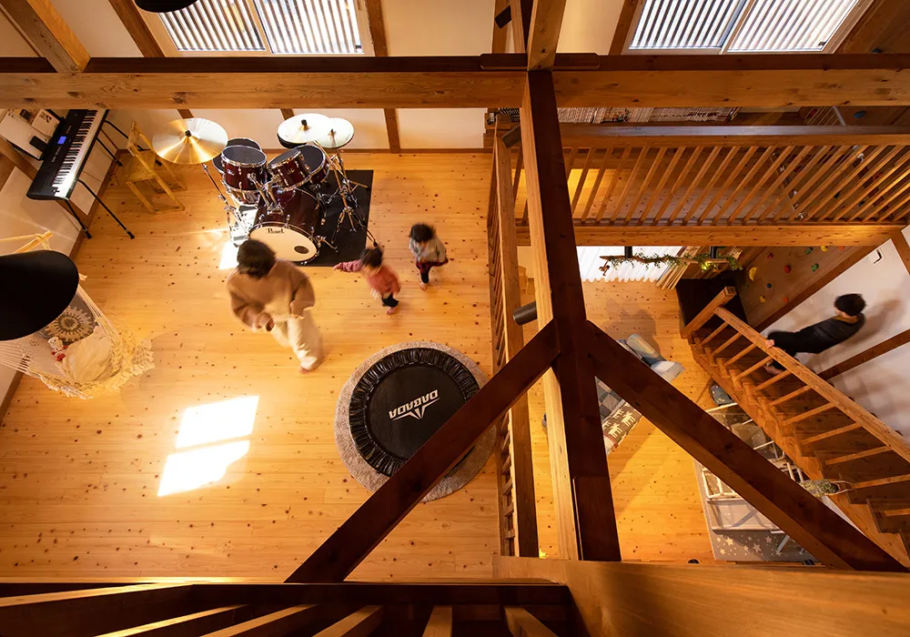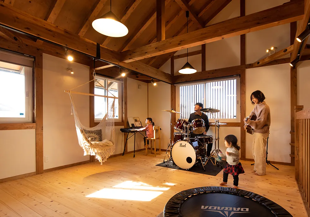サイエンスホームの展示場や完成見学会に足を運び、飽きのこない家ができそうと感じました。和洋に合うむき出しの梁や木の温かなど、私たちの好きな家のイメージにぴったりでした。私はドラムやギターなど、趣味の楽器演奏ができる空間を、料理好きな妻は使いやすいキッチンをそれぞれ希望。他にも子どもと遊べるボルダリングボードなど、家族みんなが楽しめる家になりました。子どもの成長とともに得られる思い出づくりをこの家でできることに、ワクワクしています。